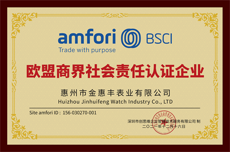 ?;葜菔薪鸹葚S表業(yè)有限公司通過amfori-BSCI驗(yàn)廠